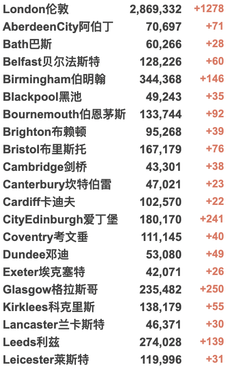 英国大学城市疫情具体数据