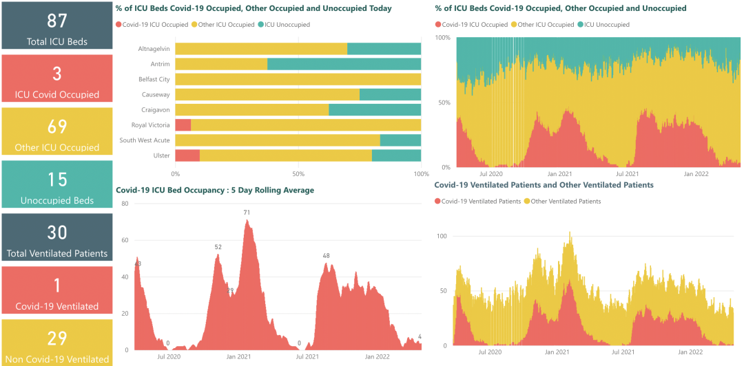 从2021年3月5日以来,苏格兰地区共有累积新冠入院患者62,229名(+112)确诊患者出院。截至4月29日午夜,近期住院的疑似/确诊新冠患者1,435名(-23),其中21名(-2)确诊新冠在重症监护室ICU。