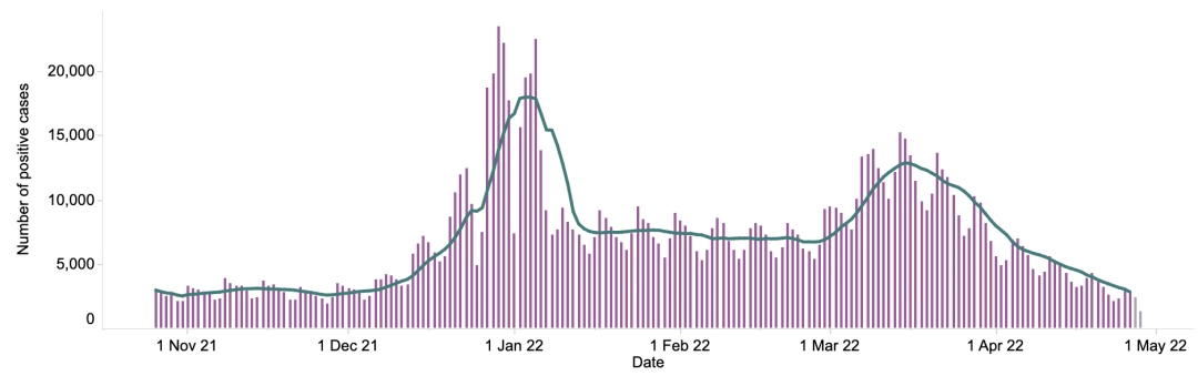 随着南非比预期提前进入第5波新冠疫情,该国单日感染率再次出现轻微上升。截至4月25日的一周,病例与前一周相比增加了137%。