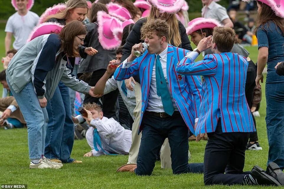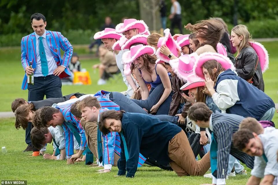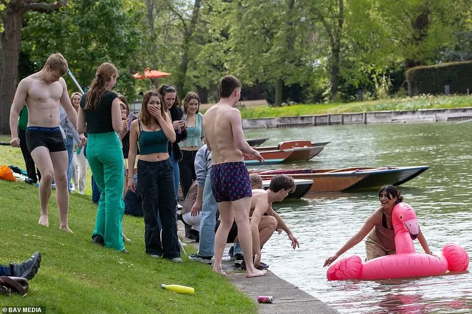 后来,摔跤比赛被禁止,学生们反而把它变成了一个饮酒会——玩游戏,然后脱光衣服跳进剑河(River Cam)。