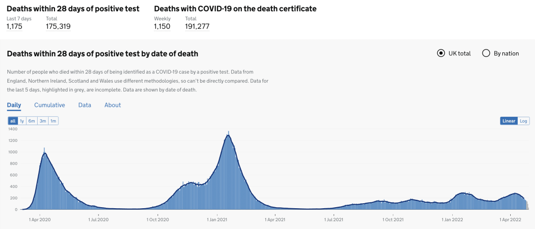 英国日增病亡案例趋势图