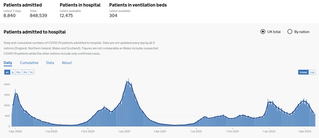 5月3日数据:目前住院的确诊新冠患者12,475人,累计住院新冠患者总数为848,539(+8,840)。