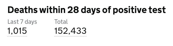 目前英格兰地区使用呼吸机的新冠患者有304人(+45);病亡新冠患者总计152,433人(+1,015)。