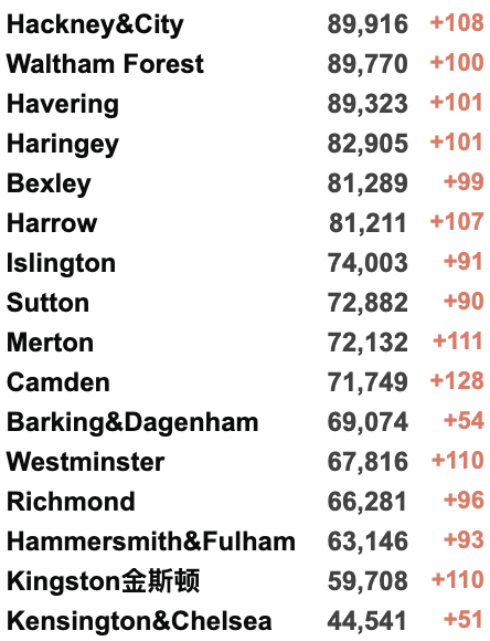 英国疫情实时地图 / 城区具体数据