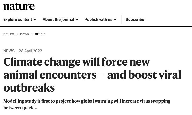 发表在《自然》(Nature)杂志上的一项研究显示,未来50年里,气候变化(Climate change)可能会推动超过15,000种哺乳动物向其他哺乳动物传播病毒的新案例。