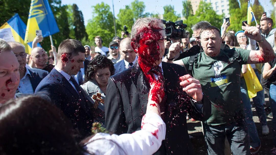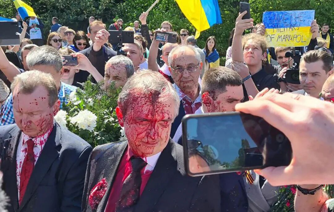 据俄罗斯国家通讯社报道,俄罗斯驻波兰大使Sergei Andreev在向华沙的苏联士兵公墓敬献花圈时被泼红油漆,但没有受伤。
