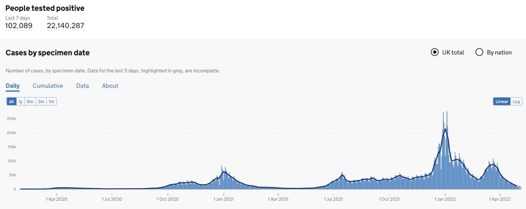 那么,放宽新冠限制措施之后的英国,最新一周的新冠相关数据如何呢?