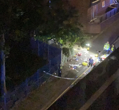 “当晚酒吧开始纷纷收工,接下来没多久这个地区被好多辆武装应急车辆、警车、步行警察和救护车所包围。最后警察的直升机都来了...我随后看到医护人员正在治疗两个貌似被刺伤的人。”