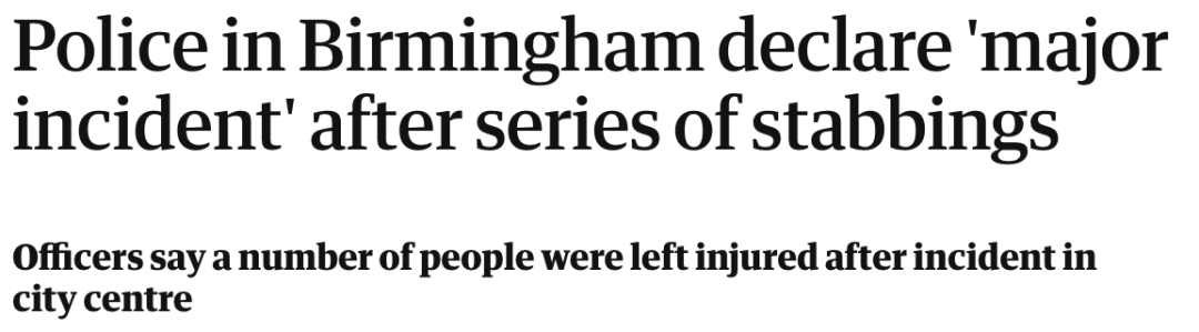 9月5日(周六)英国时间深夜,一名持刀者在伯明翰市中心多处进行疯狂持刀捅人袭击事件,导致1死7伤。目前警方正在追捕他。