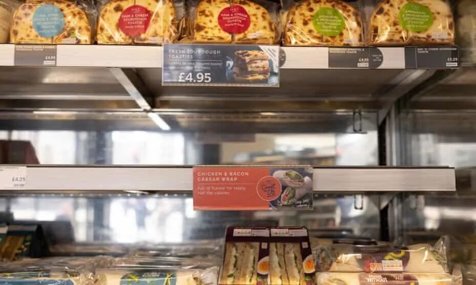 MailOnline走访了几家超市和食品店,通常堆满鸡肉沙拉和三明治的货架上都已清空。