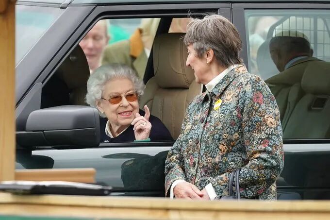 在因行动不便缺席英国议会开幕式的几天后,96岁的英国女王被拍到现身皇家温莎马展Royal Windsor Horse Show。她戴着太阳镜,穿着海军开衫式上衣,摇下车窗与几人聊天,并露出灿烂地微笑。