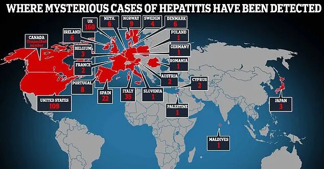 全球报告不明原因儿童急性肝炎分布图 | 图片来源Daily Mail