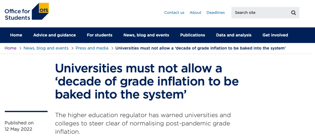 学生办公室(the Office for Students, OfS)的一份报告称,受新冠疫情影响,学校采取“无伤害政策”(No Detriment Policies),考试形式发生变化,成绩可能会比通常情况下“更高”。