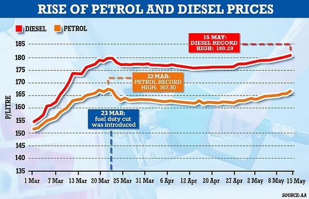 汽油和柴油价格上涨 | 图片来源AA/Daily Mail