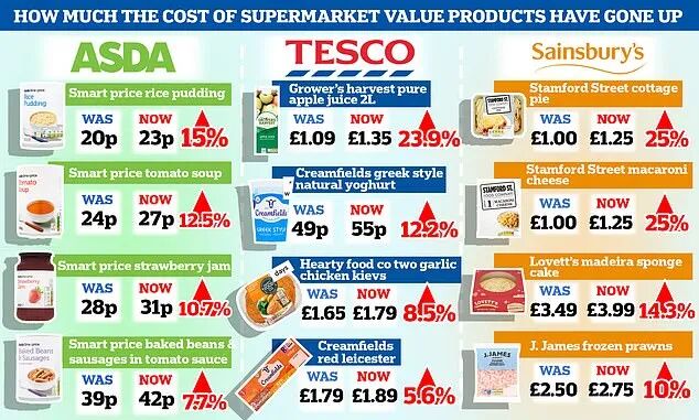 三家全英连锁超市食品上涨 | 图片来源Daily Mail