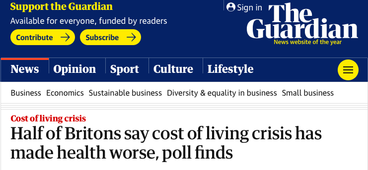 伦敦大学学院健康平等研究所所长Michael Marmot教授说,这项调查表明,生活成本危机毫无疑问正在损害较贫困人口的健康。然而令人惊讶的是,“高于平均收入群体的人也受到了明显影响”。