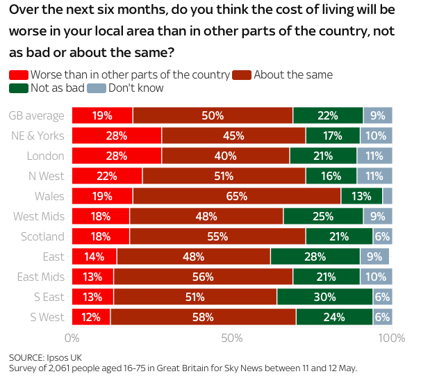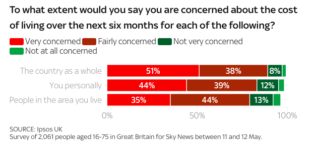 未来六个月对个人生活费用的担忧调查 | 图片来源PA Media