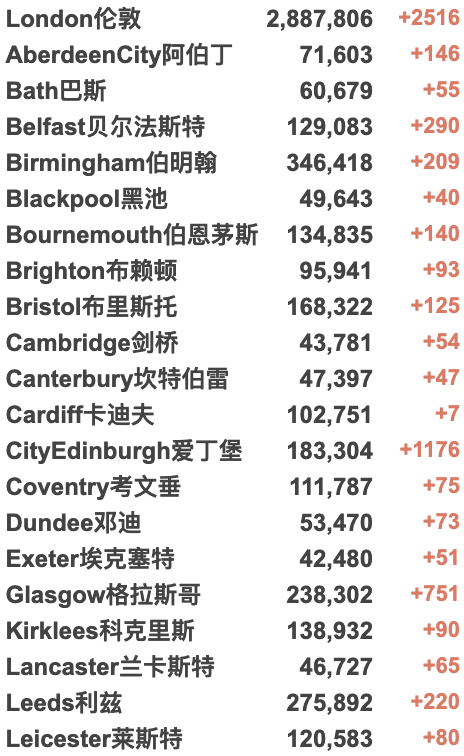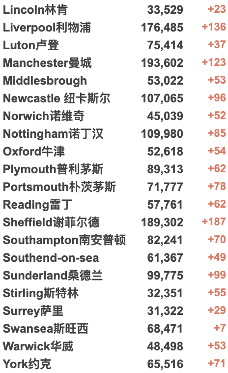 *英国政府表示:疫情数据总数仅于每周一、四更新,但每日仍将更新各地区疫情的增加数量,以供大家参考。