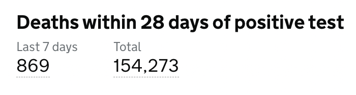 目前英格兰地区使用呼吸机的新冠患者有159人(-3);病亡新冠患者总计154,273人(+869)。