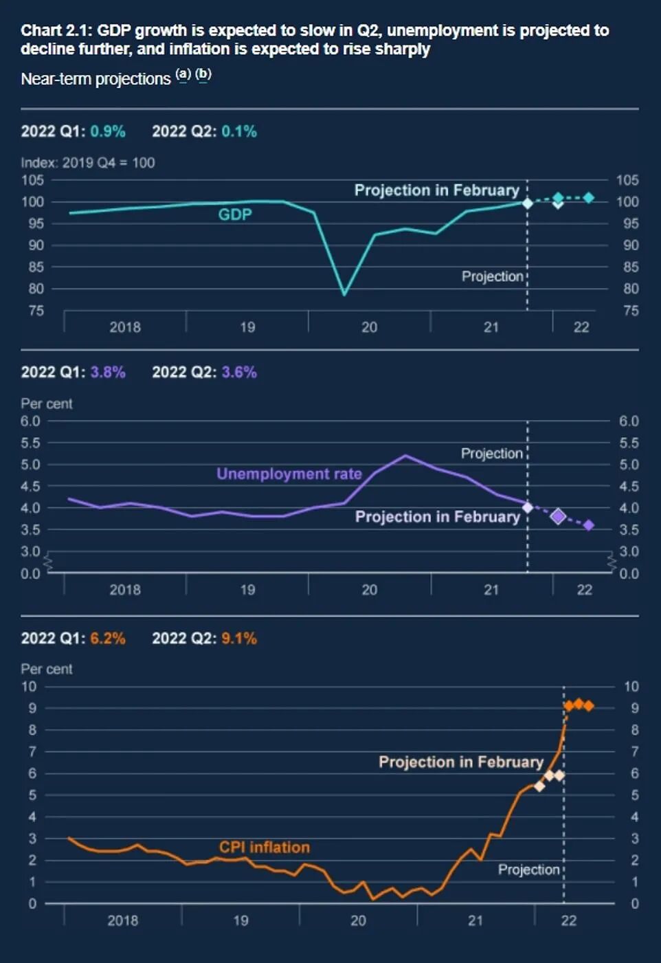 英格兰银行对国内生产总值和通货膨胀的最新预测