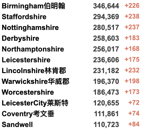 英国疫情实时地图 / 城区具体数据