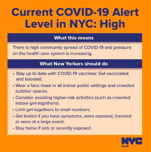 由于新冠确诊病例上升,纽约市卫生官员决定将该市新冠警报级别上调至“高级”,并强烈建议人们在室内公共场所戴口罩。但就目前而言,不会强制执行“口罩令”。