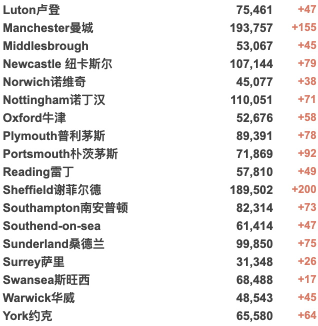 *英国政府表示:疫情数据总数仅于每周一、四更新,但每日仍将更新各地区疫情的增加数量,以供大家参考。
