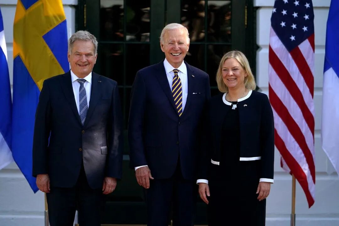 美国总统拜登于当地时间5月19日(周四)欢迎芬兰总统Sauli Niinistö和瑞典首相Magdalena Andersson来到白宫,此前这两个北欧国家的领导人都提交了加入北约NATO的申请。