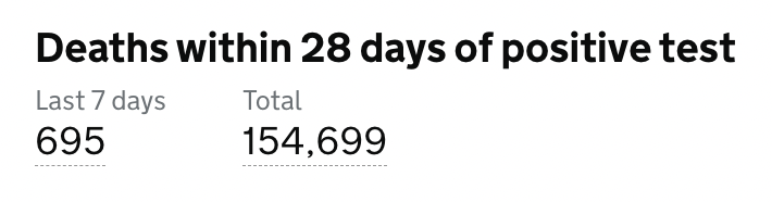 目前英格兰地区使用呼吸机的新冠患者有165人(+4);病亡新冠患者总计154,699人(+695)。