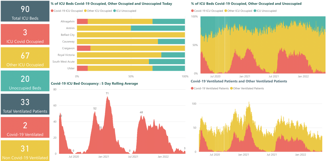 从2021年3月5日以来,苏格兰地区共有累积新冠入院患者63,955名(+62)确诊患者出院。截至5月19日午夜,近期住院的疑似/确诊新冠患者761名(-84),其中12名(-1)确诊新冠在重症监护室ICU。