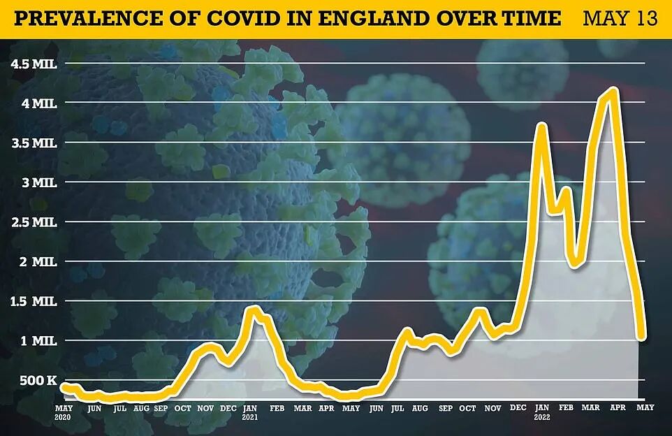 数据显示,英国新冠疫情现在达到了自去年12月中旬以来的最低水平。国家统计局(ONS)估计,截至5月13日的一周内,英格兰有100多万人(即每55人中有1人)感染。