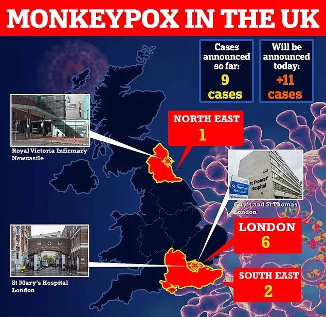 当地时间5月19日(周四)晚,英国卫生官员宣布,英国猴痘疫情规模已经“翻倍”,新增确诊病例达到11例,总报告20例相关感染病例。
