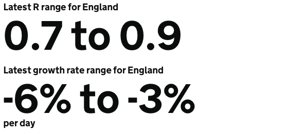 据国家统计局(ONS)更新数据,英格兰地区最新R值估计在0.7-0.9之间。这意味着,平均每10个感染者会感染7-9个其他人。