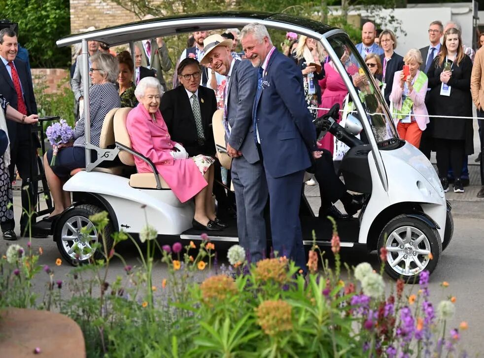 96岁的女王今年也准时出席了每年不容错过的切尔西花展Chelsea Flower Show。鉴于身体原因,女王身穿粉色套装,首次搭乘高尔夫球车参加今年的观赏活动。也是女王这辆豪华电动高尔夫球车的首次正式亮相。