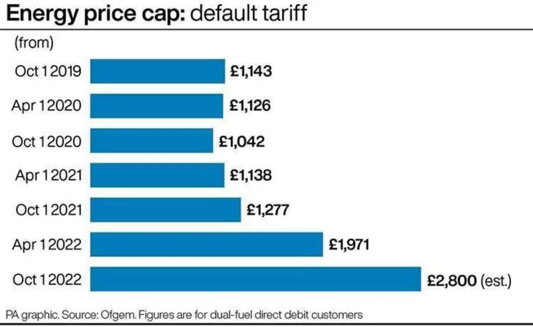 此前,英国通货膨胀率飙升至40年来新高,能源账单预计将在秋季再攀升£800,英格兰银行警告说,由于乌克兰战争,食品价格将出现“世界末日式”的上涨。