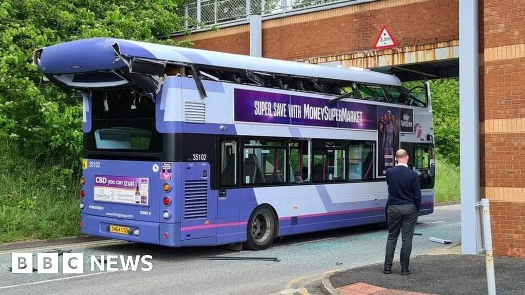 5月25日(周三),谢菲尔德一辆双层巴士撞上了一座人行天桥并压坏了车顶。运营商First表示,事故导致四名乘客受轻伤,而司机没有受伤,但受到了惊吓。