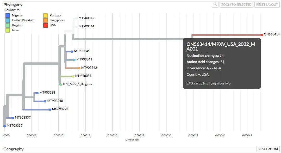 美国一项分析显示,目前报告的猴痘病毒跟之前的猴痘病毒相比出现了突变:共出现94个核苷酸变化和51个氨基酸变化。