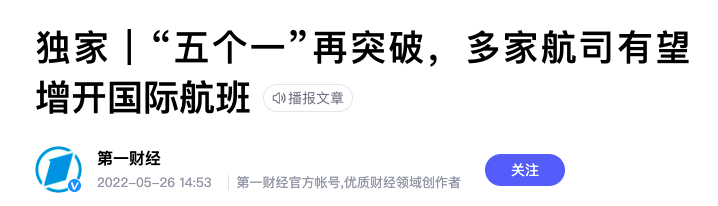 这意味着,自2020年3月开始实施的国际航班“五个一”政策*有望逐步打破!