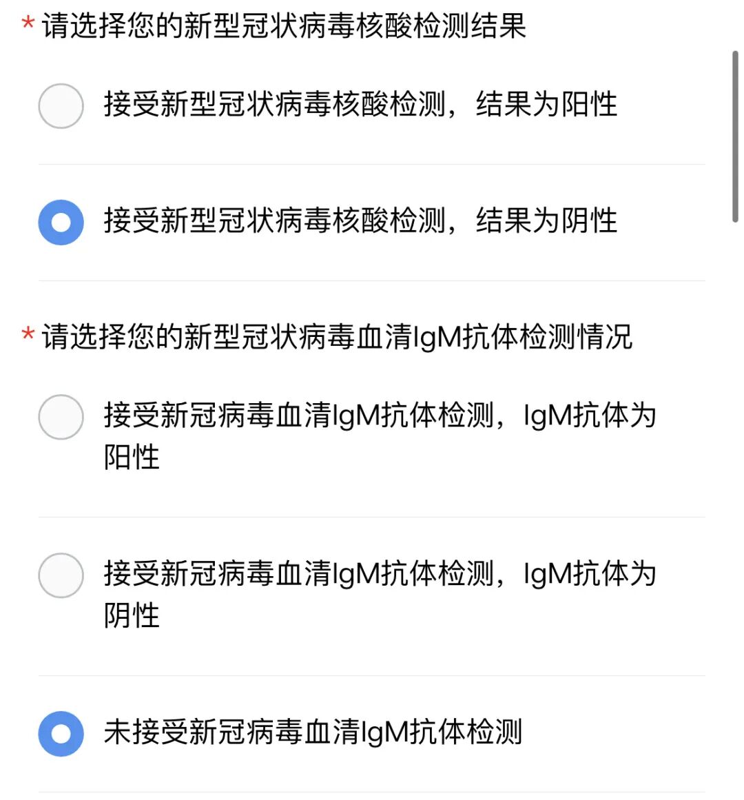 所以统一选“未接受新冠病毒血清IgM抗体检测”