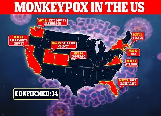 美国发现了首批猴痘人际传播的潜在病例。上周末美国新增4例病例——加利福尼亚2例,科罗拉多和纽约各有1例。使得美国八个州的感染人数达到14人。