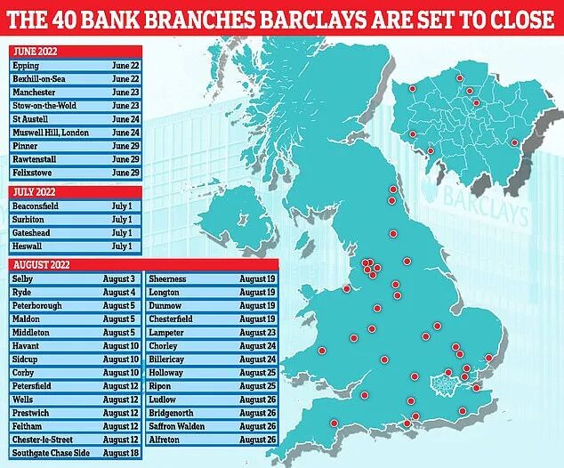 巴克莱表示,将提前12周通知分行关闭,解释这样做决定的理由,并给出其他临近分行和银行的地址及服务细节。