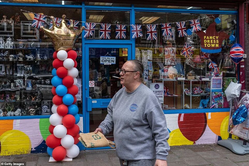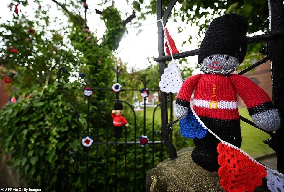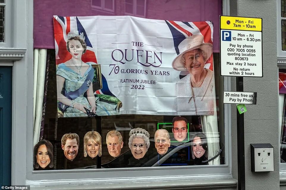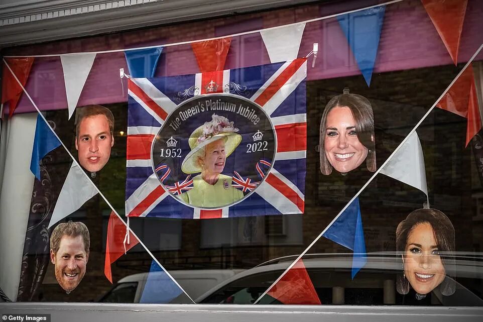 除了官方发布的一系列庆典仪式和活动之外,英国街头的商店、住房外,早已挂满相关周边装饰,气氛感满分!