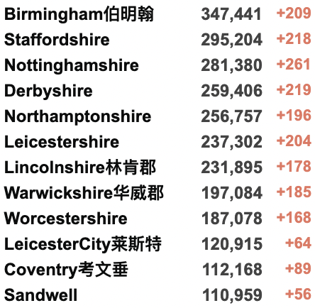 英国疫情实时地图 / 城区具体数据