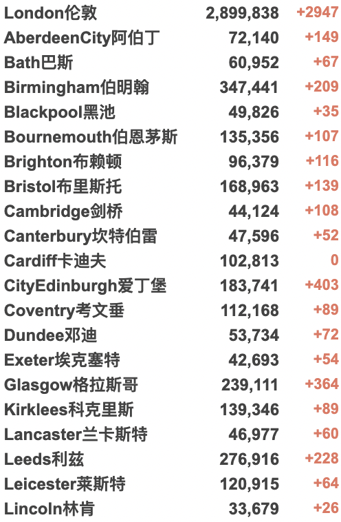 英国大学城市疫情具体数据