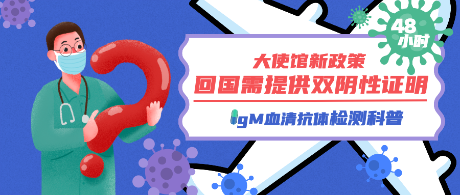 官方表示,新政策要求登机前48小时内在英国各地的正规检测机构完成 1/ 核酸检测 和 2/ 血清IgM抗体检测 并得到两份相应的阴性证明