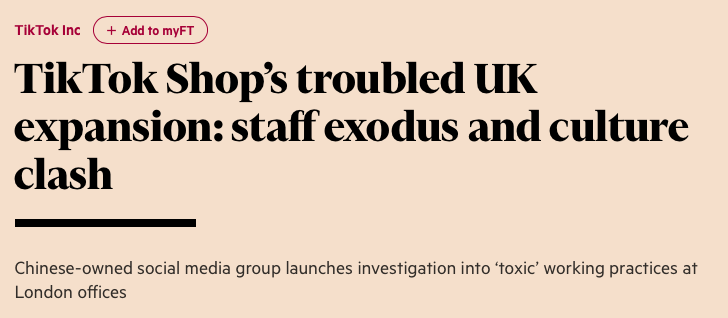 据英国《金融时报》(Financial Times)6月8日(周三)报道,“因为难以适应这家中国社交媒体工作的企业文化,大批TikTok伦敦办公室的英国员工辞职”。