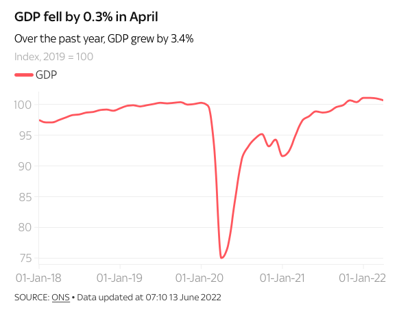 根据官方公布的数据,英国经济在4月份收缩了0.3%,英国工业总会CBI要求政府立即采取”重要行动“以防止通货膨胀导致的经济衰退。