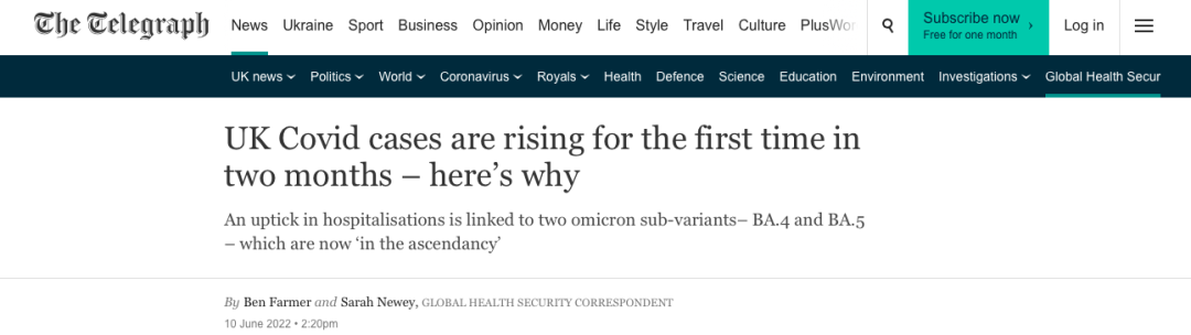 Omicron变种的BA.2型亚株依然是英国目前的主要传播毒株。而BA.4和BA.5型亚株最近被英国卫生安全局(UKHSA)列为“值得关注的变种”(variants of concern)。