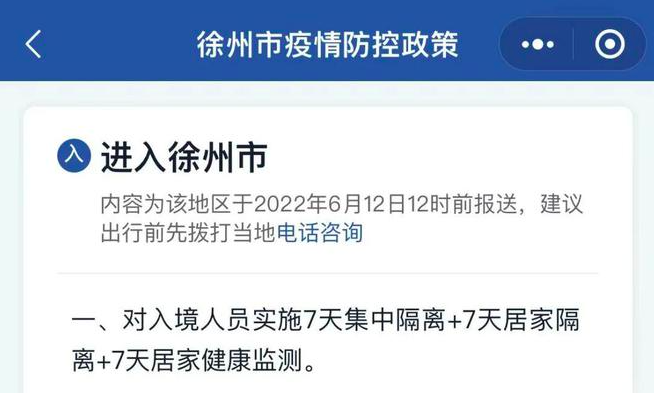 目前江苏省政府官网中,常州和徐州已经对入境隔离要去进行了更新——据「国务院客户端」小程序显示,江苏省常州市、徐州市入境隔离时间已由之前的“14+7”调整为“7+7”,即7天集中隔离+7天居家隔离。