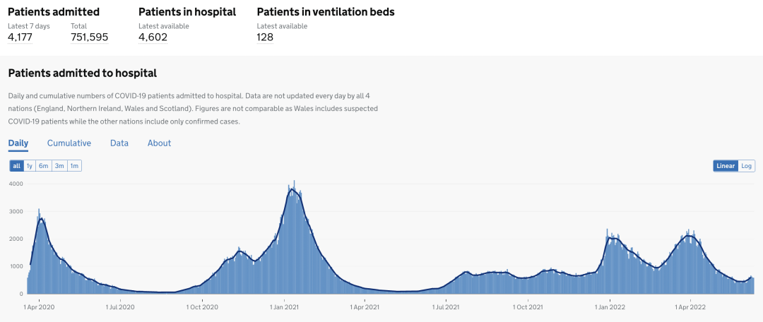 6月15日数据:目前住院的确诊新冠患者4,602人,累计住院新冠患者总数为751,595(+4,177)。